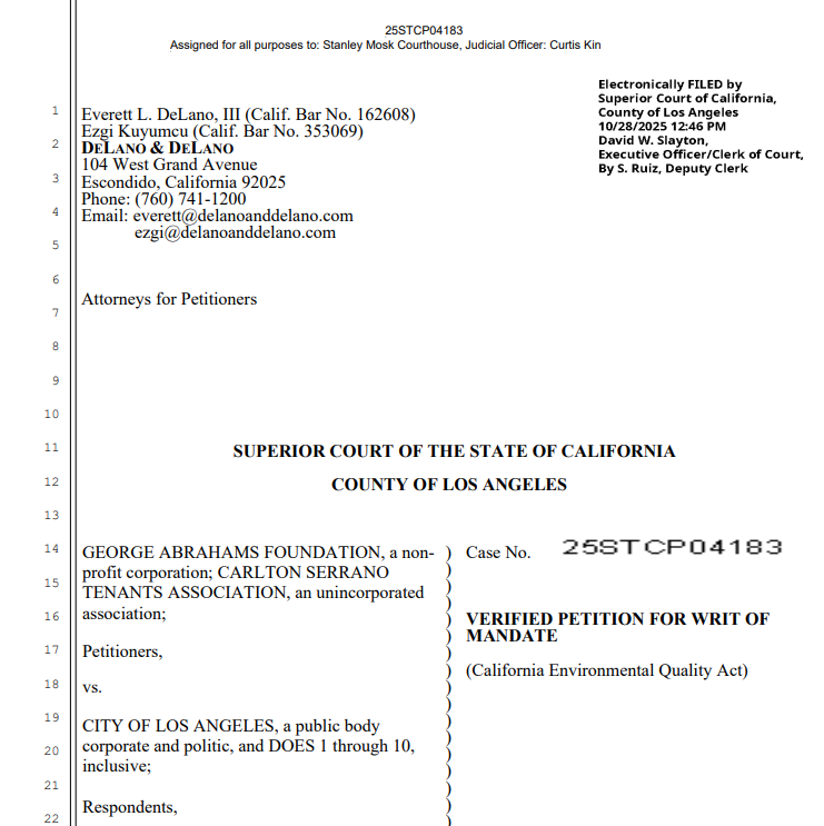 The Carlton Serrano Tenants Association (CSTA) joins forces with GAF in calling out the City’s highly unlawful approval of the West Carlton Way luxury development – an approval that green-lights the demolition of 25 rent-stabilized homes, displacement of longtime residents, removal of mature trees (some “protected”), and grants extreme and unwarranted development waivers, including height increases of nearly 175%. And as usual, the City insists these actions have “no impact” on the environment and no impact on the people who live there. All in sweeping violation of the Vermont/Western SNAP and without any environmental review.